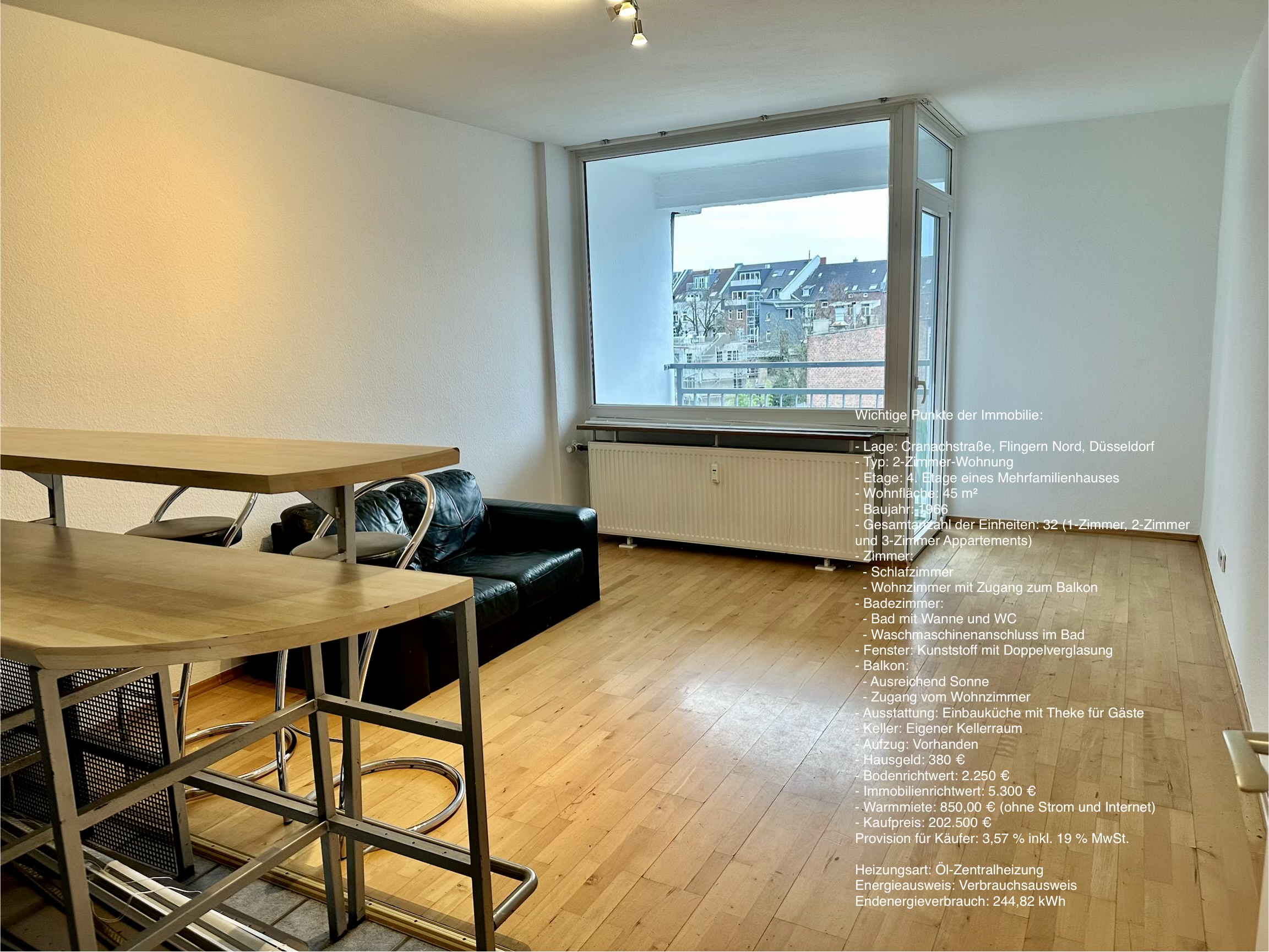 - Warmmiete: 850,00 € (ohne Strom und Internet)
